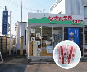 ・「おぼろタオル」直売所でお得な商品販売。