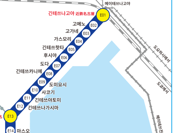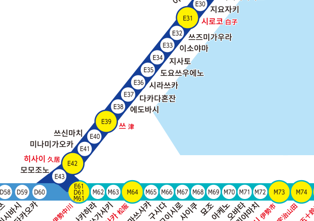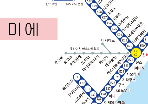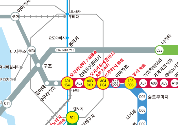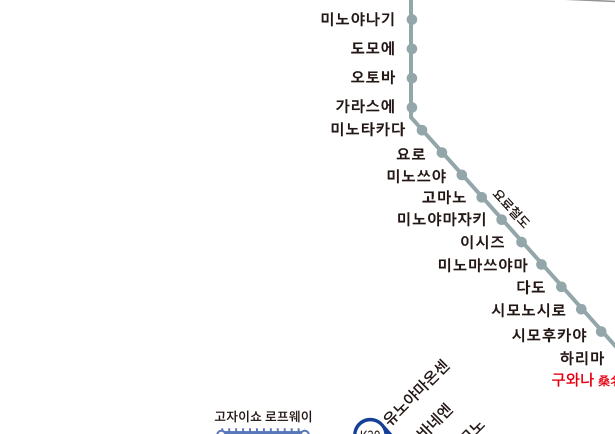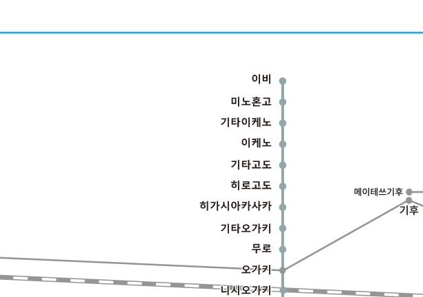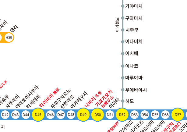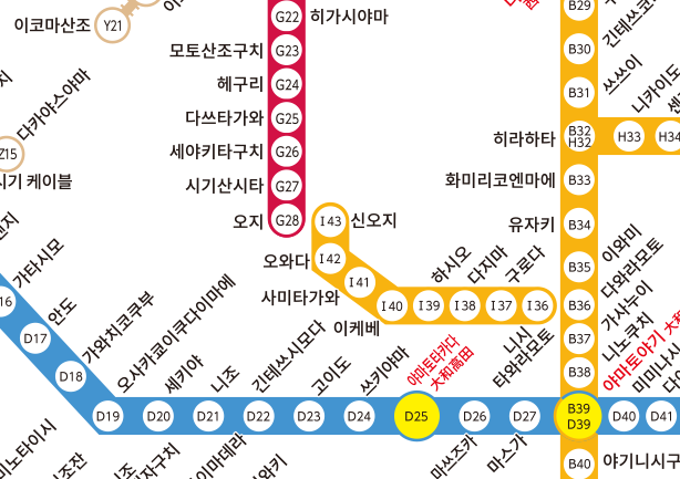 노선도를 클릭하면 확대됩니다. 역 번호를 클릭해서 표시된 역명을 클릭하면 역에 관한 정보가 나타납니다.