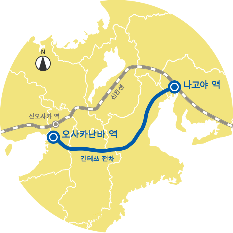 두 도시는 긴테쓰 전철로 이동할 수 있습니다.