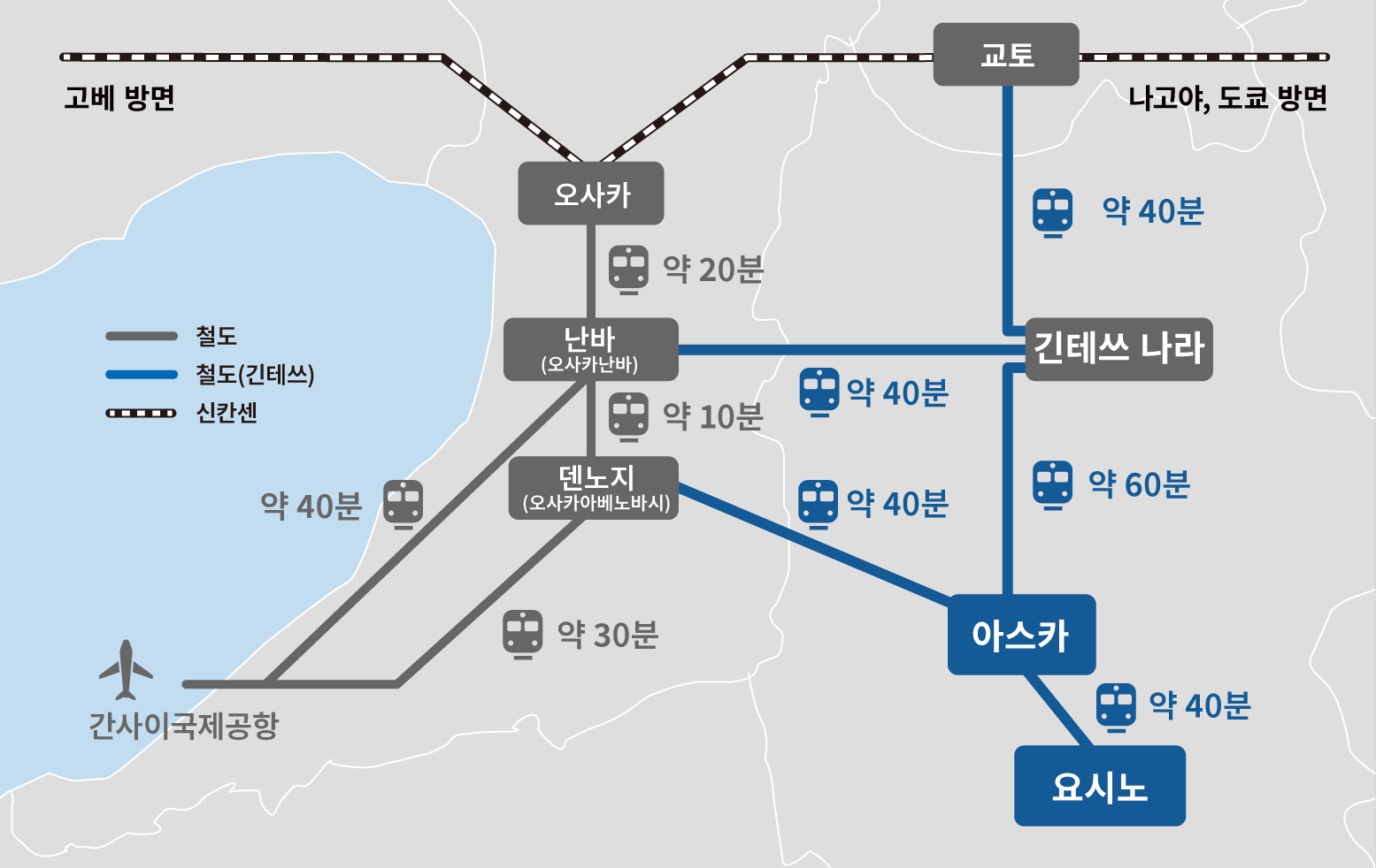 오사카난바역에서 약40분. 당일치기 여행으로도 추천합니다.