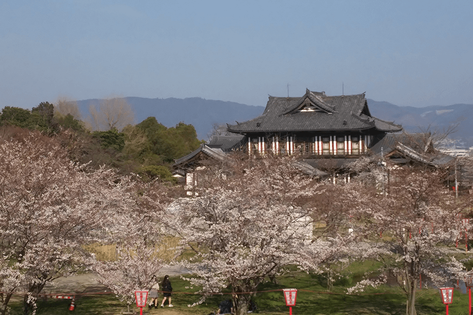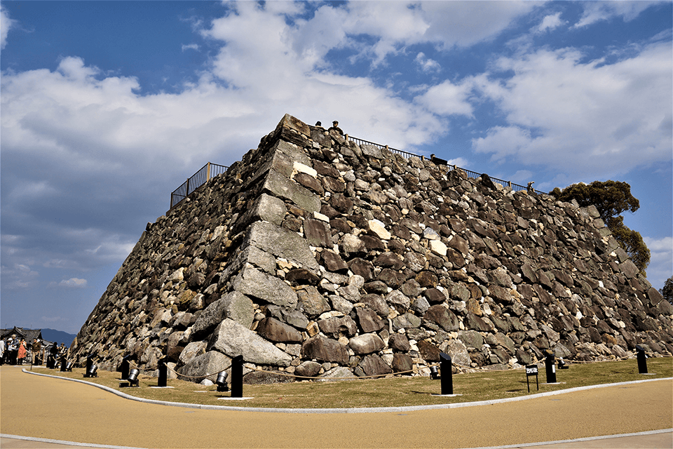 에도 시대에 야마토국의 중심 성곽이었던 고리야마 성터는, 메이지 시대에 폐성되었지만 한때 웅장하던 성 돌담과 해자 등이 잘 남아 있어 문화와 자연을 최대로 즐길 수 있는 곳입니다. 성 돌담에는 석불과 묘석이 사용되었습니다. 봄에 방문하면 인상적인 성을 배경으로 불빛에 비춰지는 벚꽃을 감상할 수 있습니다.