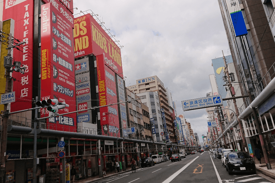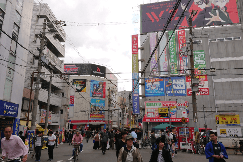도쿄의 아키하바라도 유명하지만 이곳의 이른바 ‘전자상가’는 오사카 특유의 전기와 대중문화의 메카입니다. 일렉트로닉스 애호가나 일본의 애니메이션, 만화 팬에게도 천국이겠지요. 이 개성 넘치는 거리라면 틀림없이 카메라, 컴퓨터 부품 또는 레트로 게임 쇼핑을 원하는 사람이나 코스플레이, 애니메이션 이벤트, 메이드 카페 등을 즐기고 싶은 사람까지 모든 사람들을 즐겁게 해 줄 것입니다.