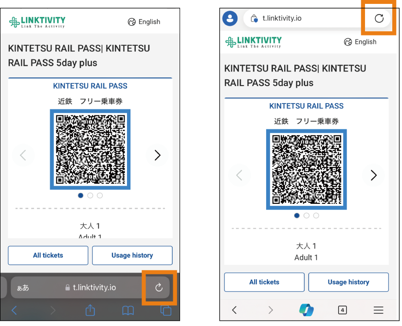 กรุณารีเฟรชเบราว์เซอร์ที่ใช้แสดงตั๋ว หากทำเช่นนี้แล้ว ยังไม่สามารถแก้ไขปัญหาได้ ให้แสดงหน้าจอต่อเจ้าหน้าที่คินเท็ตสึ