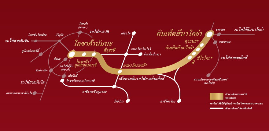 | โอซาก้านัมบะ | ![]() | คินเท็ตสึนาโกย่า | โอซาก้านัมบะ | ![]() | คินเท็ตสึนาโกย่า |