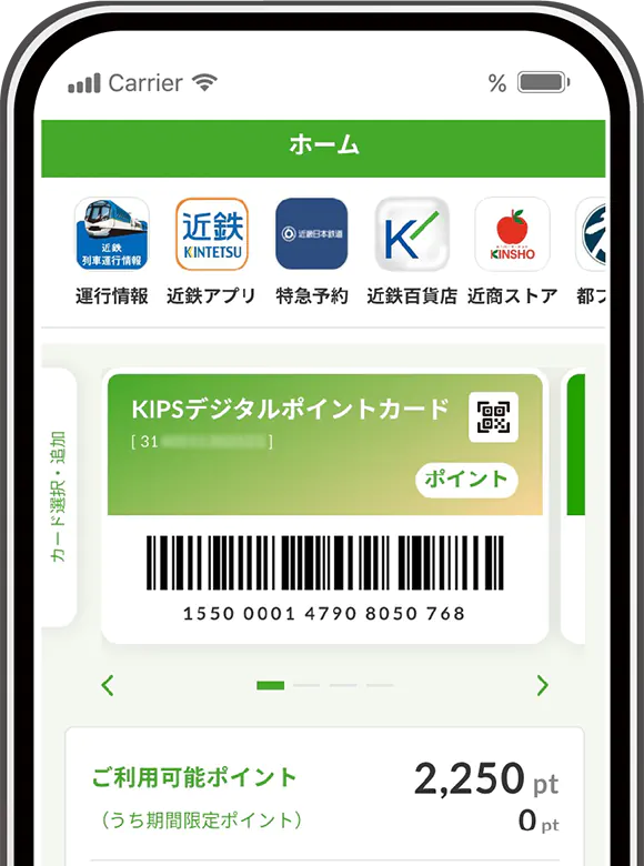 お財布からカードを取り出すことなく、KIPSポイントをためたり、つかったり、クレジットカード決済もラクラク!さらに、近鉄クレジットカード(外商カード)、近鉄友の会会員証カードもご登録いただけます。