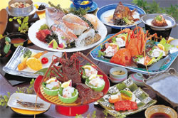 「知多半島先端・鮮度が違う師崎料理」、このコースではメインとなる昼食だけでなく、伊勢湾を眺望する温泉にご入浴や、えびせんべいの試食とお買物、花の里「ハーツガーデン」(温室)の花々を観賞いただきます。旅館の巨大生け簀から、お客様のご到着に合わせて、真鯛や伊勢海老を水揚げし、手早く調理し、「活き活き」でご賞味いただけるこの夏一番人気の日帰りバスツアーです。