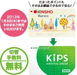 ※2013年4月1日(月)以降の「KIPSポイントカード」への切り替えは、カード発行手数料が必要です。