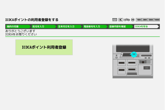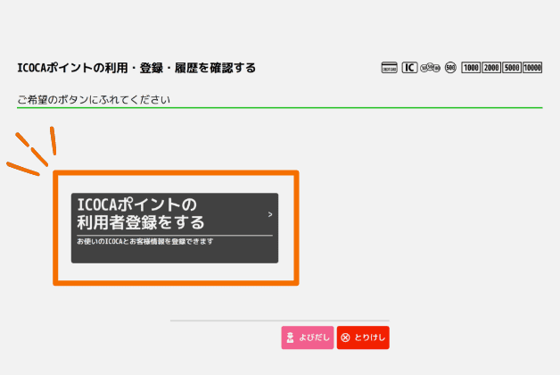 お手持ちのICOCAをトレイに置き「ICOCAポイントの利用者登録をする」を選択