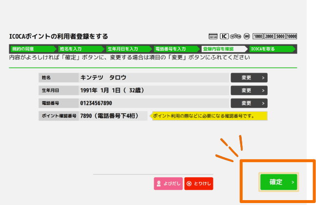 規約に同意、必要情報を入力後、入力内容を確認し「確定」を押す