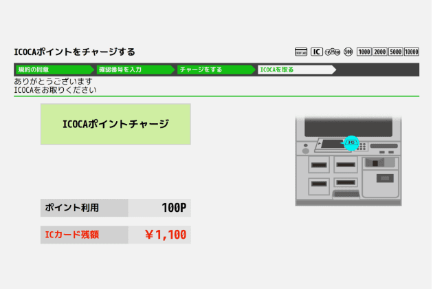 現金チャージいただいたICOCA残高に合算されます