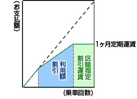 なお、1ヶ月のご利用額が区間指定割引を適用するよりも、利用額割引の方が安くなる場合、登録区間に関わらず、1ヶ月の当社線通算ご利用額に利用額割引のみを適用した額が請求されます。