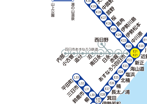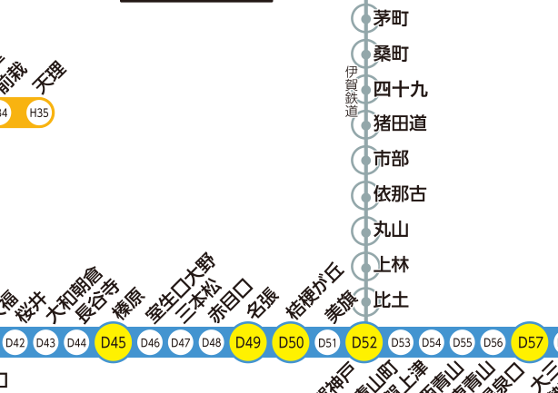 駅名またはその一部を入力してください。(漢字、ひらがな、カタカナいずれも可) 下の路線図をクリックして、駅名を設定することもできます。 近鉄駅と連絡他社線駅間の定期運賃を検索することもできます。(定期運賃を検索できるのは、当社で発売している区間に限ります。) 定期券発売区間については、通勤はこちら、通学はこちらをご確認ください。