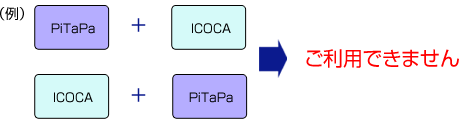 異なる2枚のPiTaPa、異なる2枚のICOCAで乗り継がれる場合もご利用できません。 近鉄線からJR線への乗り継ぎ時も同様にご利用できません。