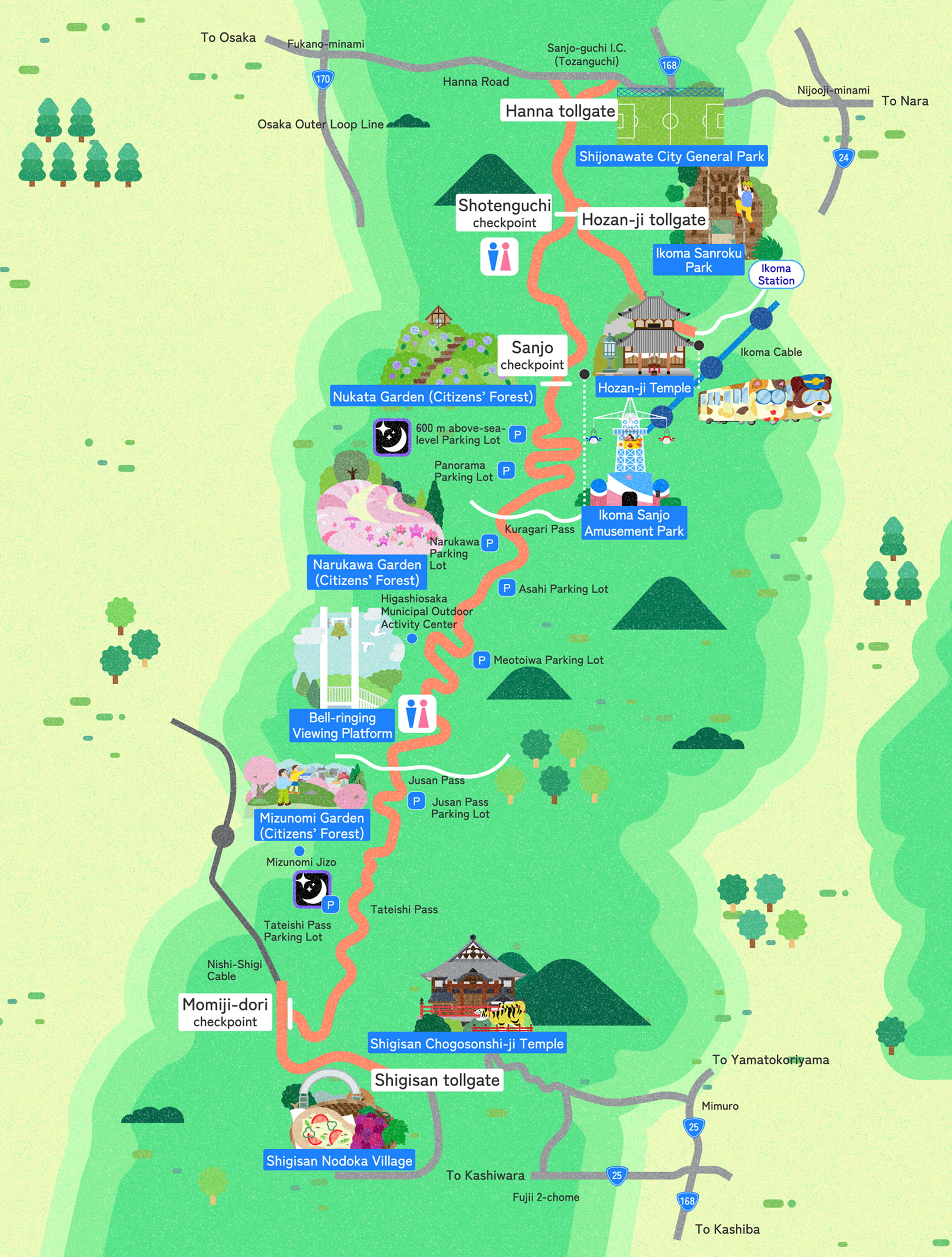 Hanna tollgate or Hozan-ji tollgate to Shigisan tollgate (Round trip)