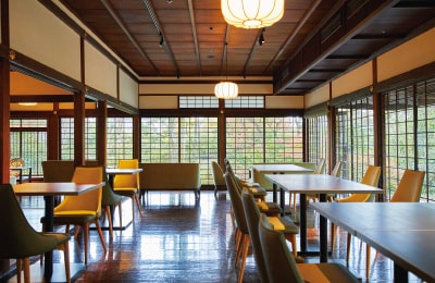 広々とした古民家を改装した、本とカレーの店。店主セレクトの本が並び、ゆっくりと読書を楽しめる。柔らかく煮込んだチキンを使用したチキンカリィ900円などのランチメニューや、ケーキなどのスイーツも。