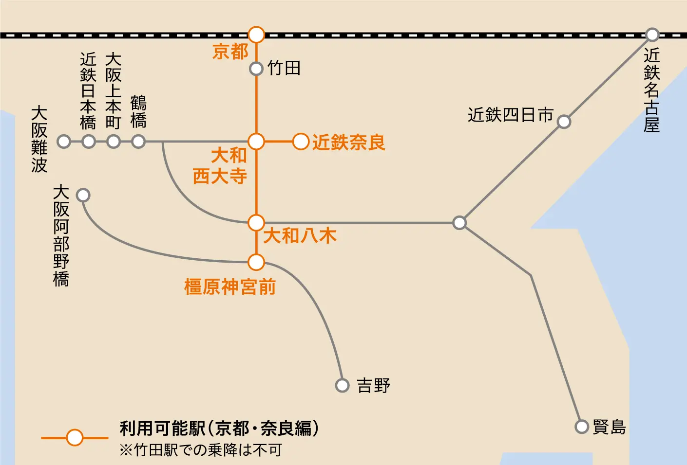 京都~橿原神宮前、大和西大寺~近鉄奈良