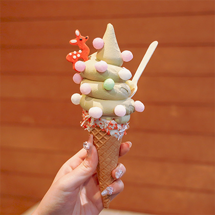 春の季節になると、鹿の角の先端が丸いことから「かわいい、お菓子になりそうだ」と、オーナーが“鹿の角”にこだわった店をオープン。