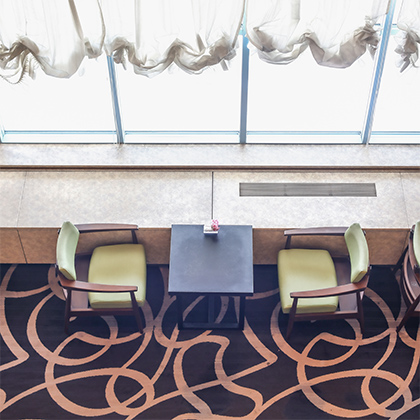 「ホテル日航奈良」の中にある開放感あふれるカフェ。