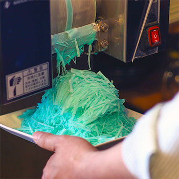 味つけした液体を瞬間冷却し、糸状の氷にする機械を使っているからなんだそう。