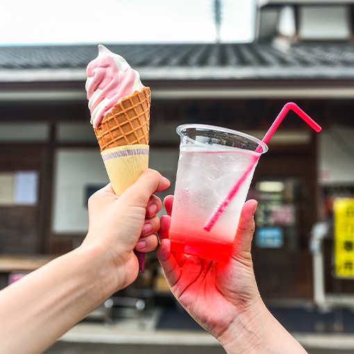 あすかルビーを使ったソフトクリームに、ソーダ・ジュースなど飛鳥の味が盛りだくさん。旅の最後まで、思う存分 "おいしい" を満喫しよう!