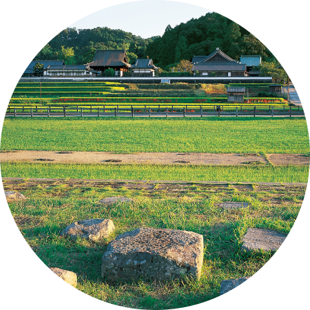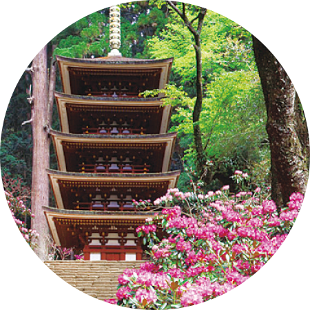 山の辺の道は日本最古の道と言われ、大和青垣の山すそに沿うように風情たっぷりの道が続きます。大神神社は拝殿背後の三輪山をご神体とし、長岳寺はツツジの名所として知られます。石上神宮は飛鳥時代の豪族・物部氏の総氏神とされています。景行・崇神天皇陵の古墳群も見どころのひとつ。西には葛城・二上山を遠望します。