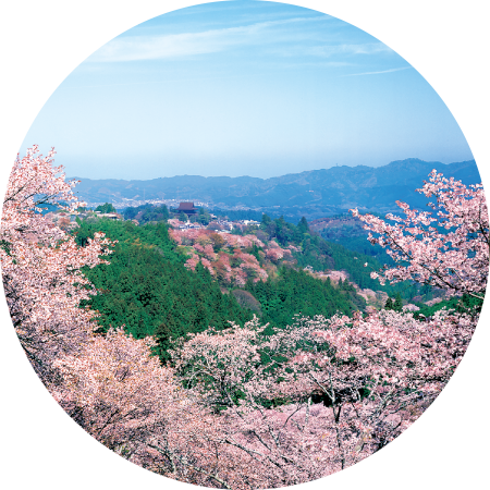 世界遺産・吉野山を周遊します。春は桜、夏は蝉しぐれ、秋は紅葉、冬は雪景色と、四季折々の自然が楽しめます。源義経、後醍醐天皇ゆかりのスポット、修験道の根本道場・金峯山寺蔵王堂など見どころが豊富。